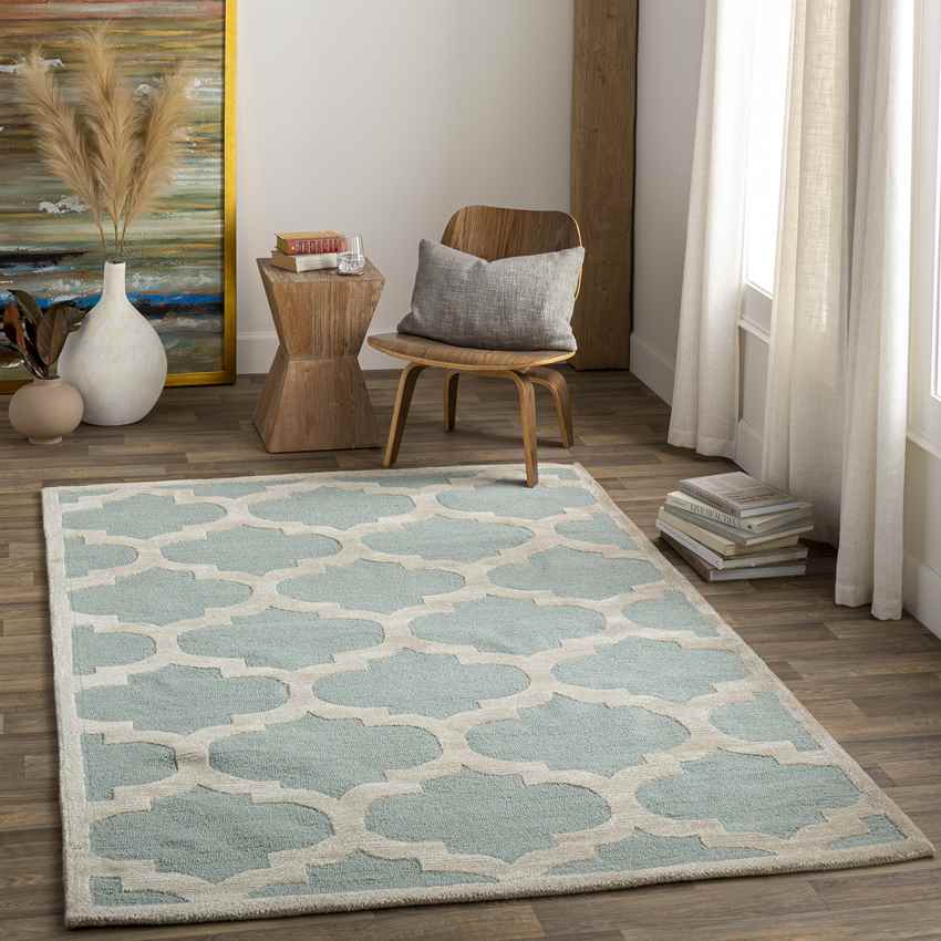 Adorn your personal space with the luxurious and elegant Pozzuoli Modern Mint Area Rug. Its medieval-inspired design, beautiful mint green tone, and comfortable feel will enhance your home at every glance.