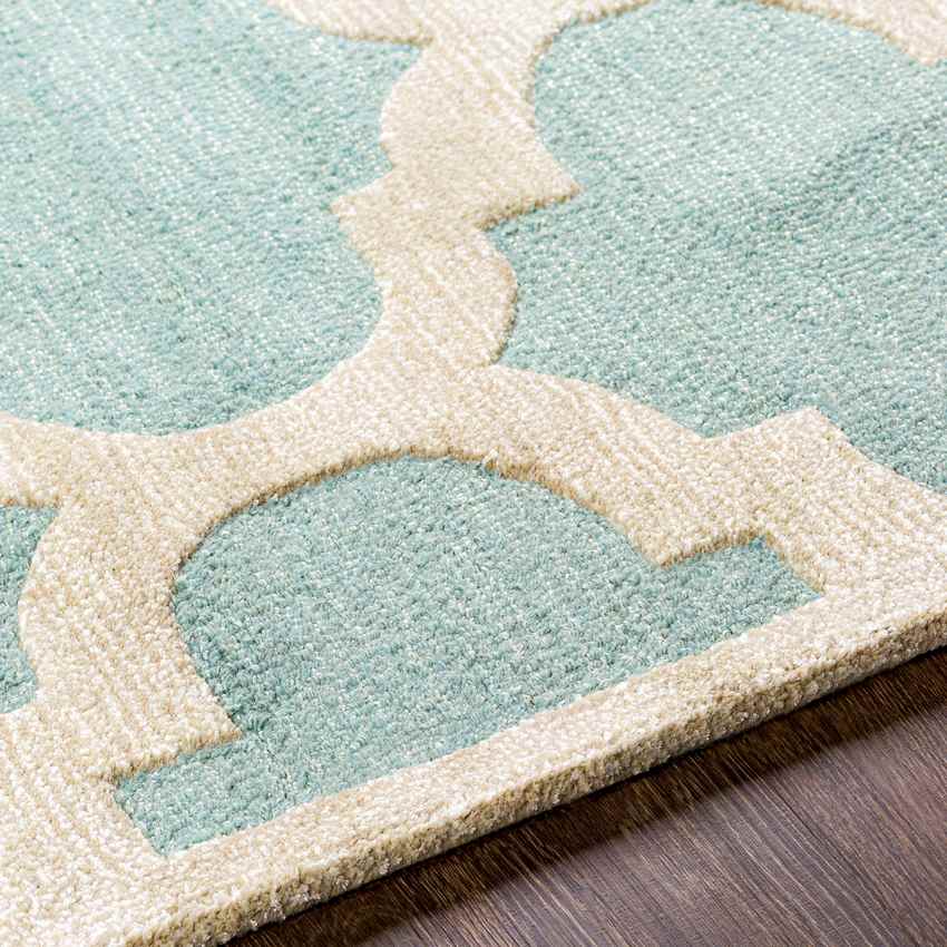 Introducing the Pozzuoli Modern Mint Area Rug, a simplistic yet compelling piece that effortlessly embodies the essence of modern dcor. With its hand-tufted construction, this rug offers an affordable alternative to other handmade options while preserving the same natural charm and appeal. Crafted in India from a blend of 70% wool and 30% viscose, it features a comfortable medium pile. The medieval-inspired design, rendered in a stunning tone of mint green against a beige backdrop, adds a touch of noble elegance to any space. Easy to maintain with spot cleaning and backed by a one-year limited warranty, the Pozzuoli Modern Mint Area Rug is a luxurious addition that will enhance your home at every glance.