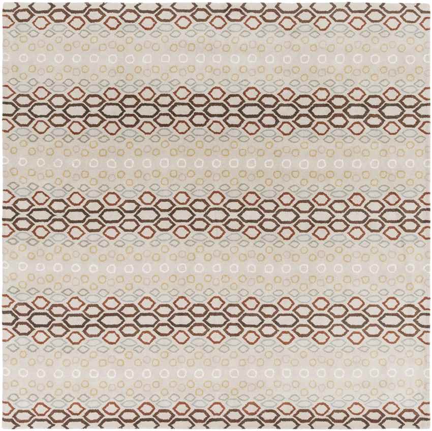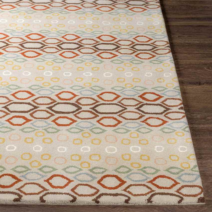 Introducing the Purmerend Traditional Beige Area Rug, a stunning piece that combines classic craftsmanship with a modern, playful pattern. Hand tufted in India from 100% wool, this rug features a medium pile of 0.39 inches, providing both comfort and durability. The rug's beige color background and easygoing motifs make it a versatile addition to any room in your home, from the living room to the bedroom, or even the dining area. It fits effortlessly into a variety of dcor styles, enhancing the space with its subtle charm and timeless appeal.