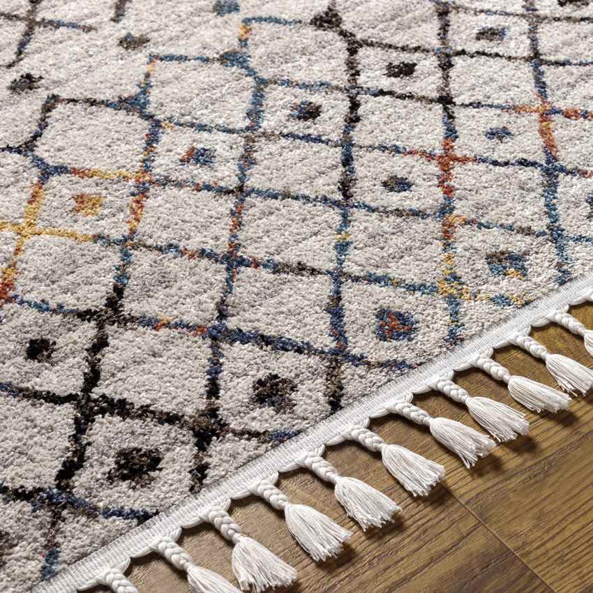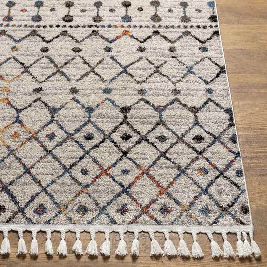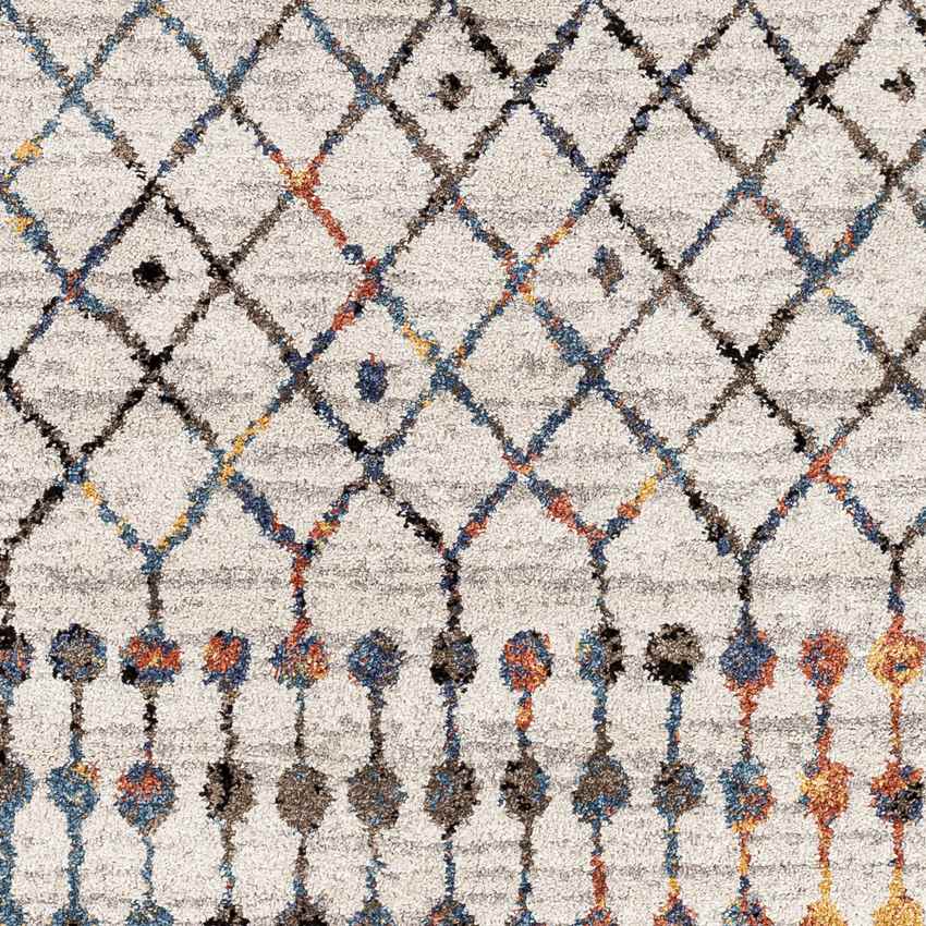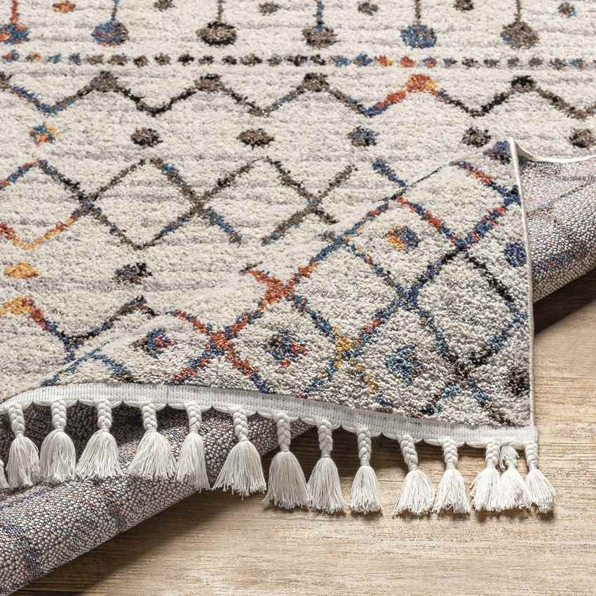 Add personality and global charm to your home with the Ricketts Global Cream Area Rug. With its rich, earthy hues and captivating pattern, this medium-pile rug is perfect for spaces that crave color, warmth, and artisanal flair. Woven with precision in Turkey, the rug features a vibrant yet grounded color palette; rust, burnt orange, teal, dark brown, black, and gray; all balanced on a creamy backdrop that complements a range of interiors.