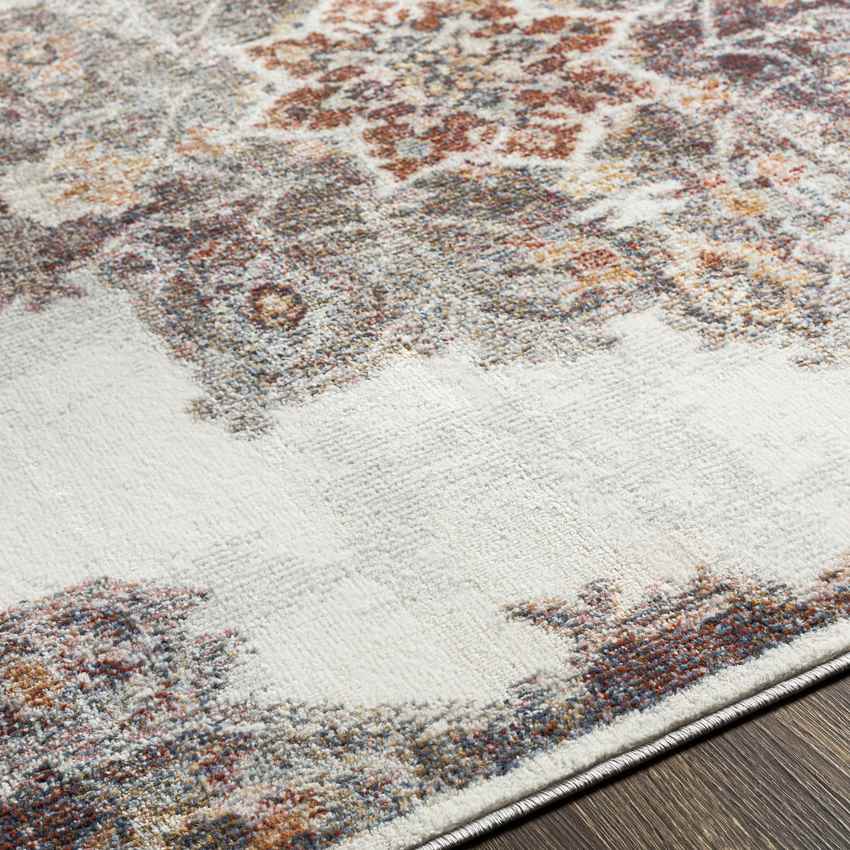 The captivating design of the Rose Hill Traditional Ivory Area Rug offers incredible versatility, allowing it to seamlessly complement a wide array of interior aesthetics. The dominant ivory base provides a bright and airy feel, while the traditional motifs, accented with warm rusts, cool blues, and versatile grays and tans, add depth and visual interest. This harmonious blend can effortlessly enhance traditional, transitional, bohemian, or even contemporary decors. Whether you aim to create a serene backdrop or introduce a subtle pop of color, this rug provides the perfect foundation, effortlessly tying together your room's aesthetic.