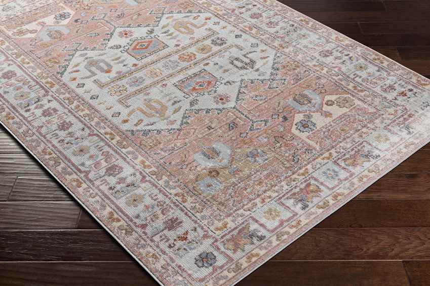 The captivating design of the Round Lake Park Traditional Light Brown Area Rug offers incredible versatility, allowing it to seamlessly complement a wide array of interior aesthetics. Its warm light brown base provides a comforting backdrop, while traditional motifs accented with soothing mauve, dusty coral, cool denim, light slate, charcoal, and gray create a harmonious and inviting blend. This rug can effortlessly enhance rustic, bohemian, farmhouse, or even transitional decors. Whether you aim to create a cozy focal point, add a touch of subtle color, or simply layer texture into your space, this rug provides the perfect foundation, effortlessly tying together your room's aesthetic.