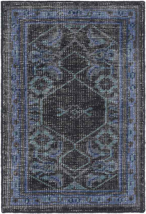 Elevate your space with the Scafati Traditional Navy Area Rug, a rich blend of heritage-inspired design and modern durability. This hand-knotted masterpiece is crafted in India from 100% wool, showcasing a captivating medley of ink blue, dark brown, teal, and charcoal hues. Its low-profile, no-pile construction makes it easy to maintain, while the detailed pattern adds warmth, depth, and timeless character to your living space.