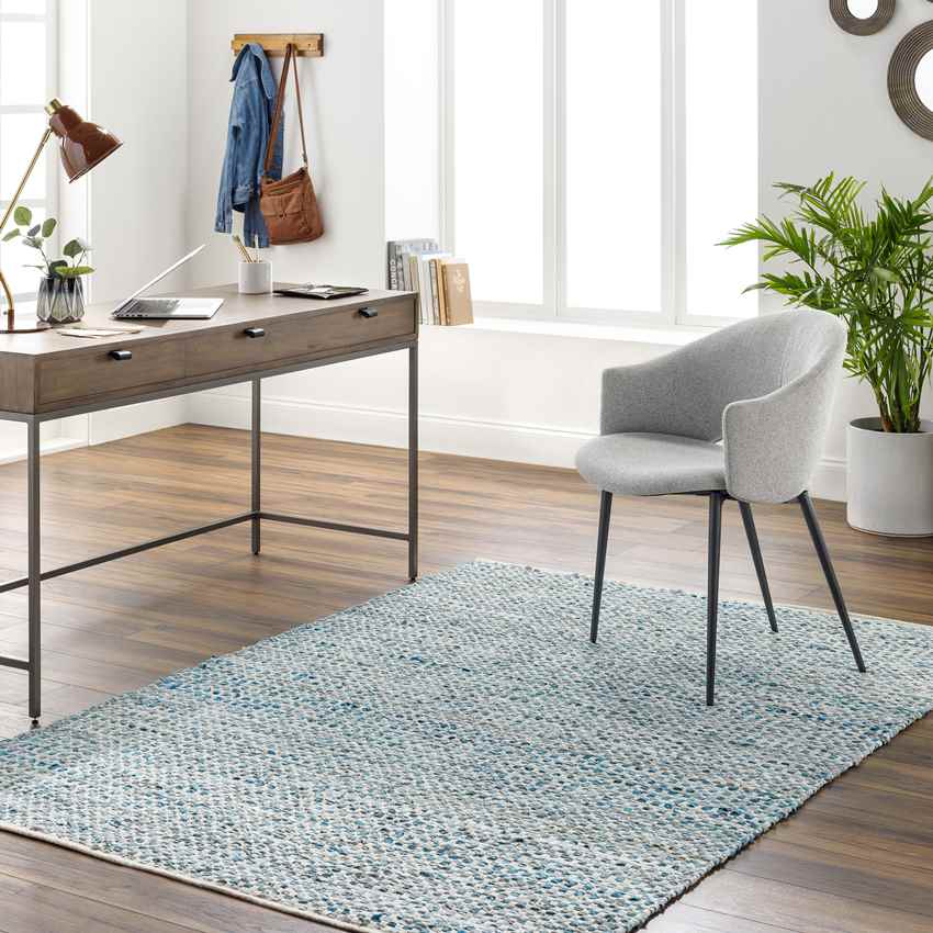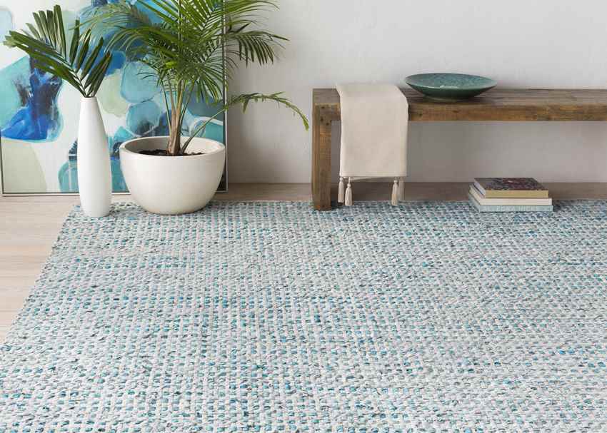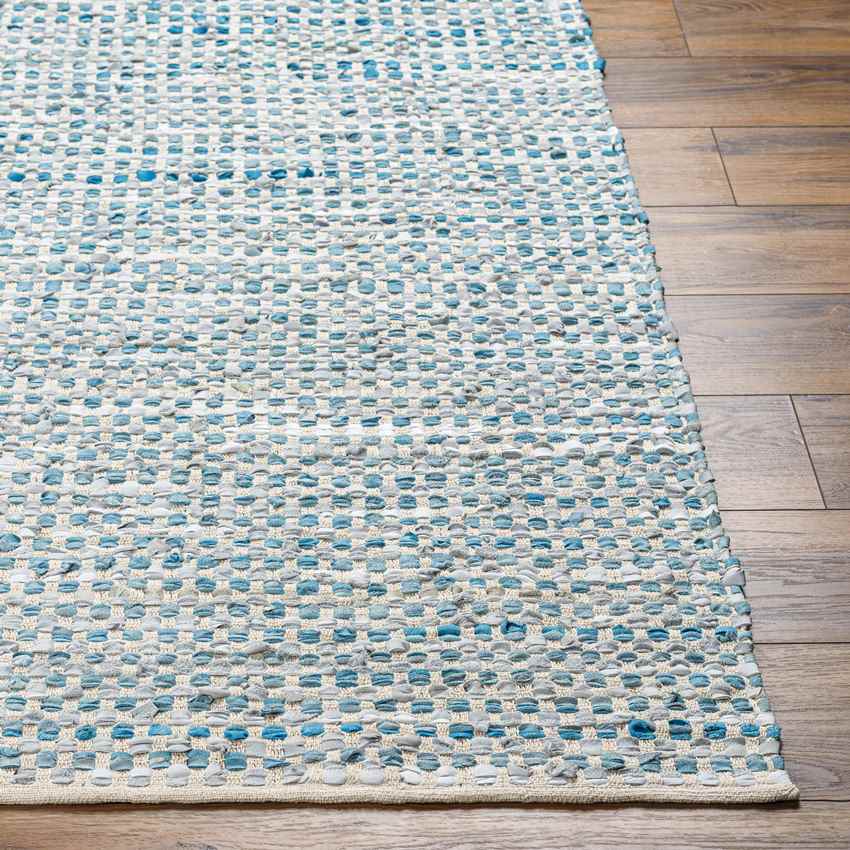 Sportive and casual composition, Sharice Modern Teal Area Rug gives you the chance to provide your home with an impressive display. This 50% cotton and 50% leather element is easy to clean and easy to suit other accessories.
