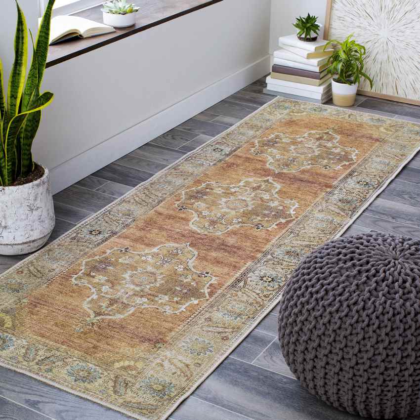 Shop now to bring home the Spilsby Traditional Camel Area Rug and infuse your home with warmth, character, and timeless style.