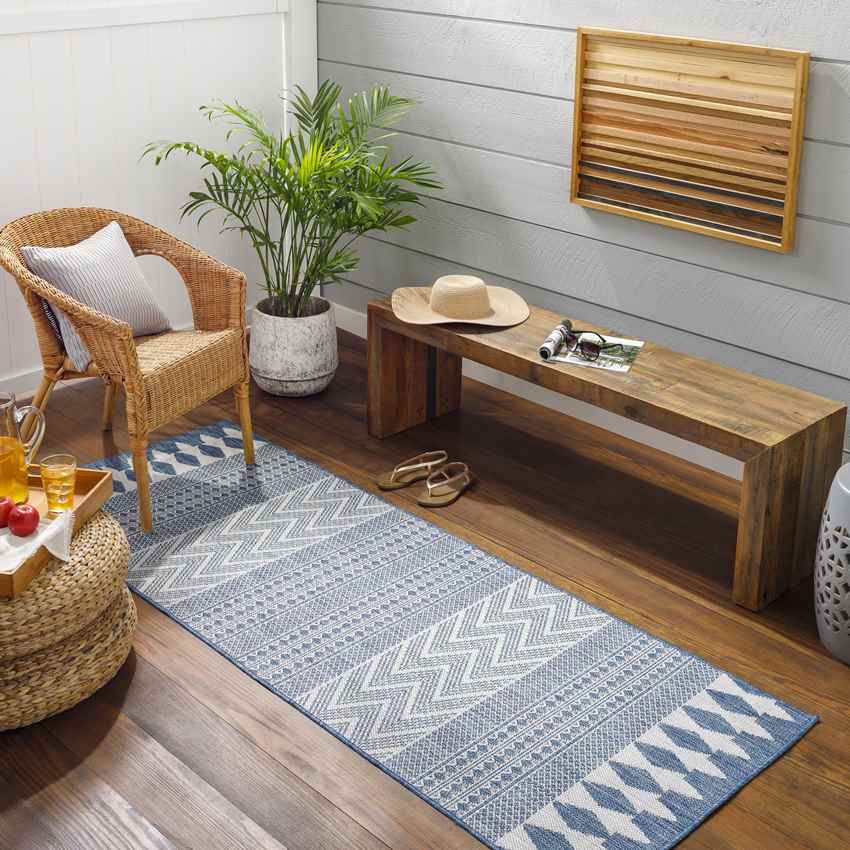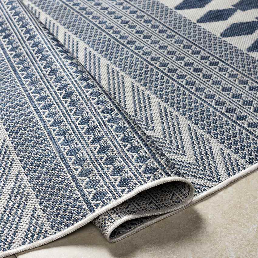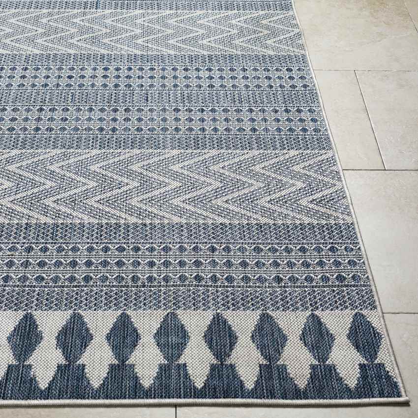 Product Features: Stain Resistant Kid and Pet-Friendly Product Specifications: Colors: Navy, Ivory Material: 100% Polypropylene Origin: Turkey Construction: Machine Woven Pile Type: No Pile Please Note: The image we display has the most accurate color possible. Due to differences in computer monitors, we cannot be responsible for variations in color...