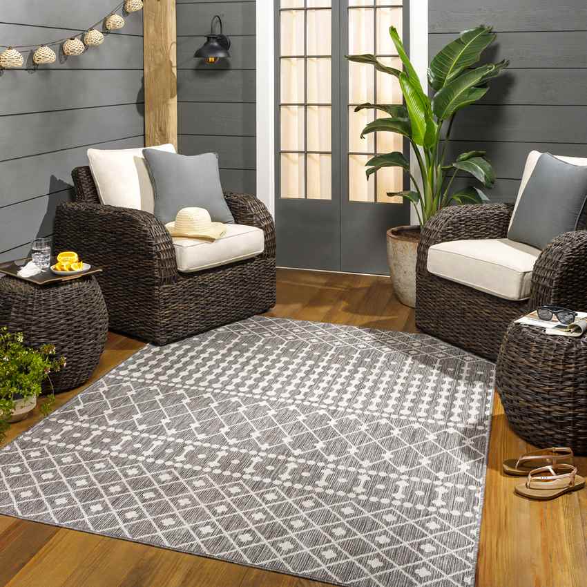 Product Features: Stain Resistant Kid and Pet-Friendly Product Specifications: Colors: Charcoal, Ivory Material: 100% Polypropylene Origin: Turkey Construction: Machine Woven Pile Type: No Pile Please Note: The image we display has the most accurate color possible. Due to differences in computer monitors, we cannot be responsible for variations in color...