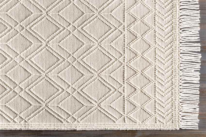 Bring the essence of farmhouse living into your home with the Staveley Cottage Beige Area Rug, a handwoven masterpiece that perfectly balances warmth and timeless charm. Made in India with premium New Zealand wool, this rug offers a blend of durability and style that complements any interior. Its delicate fringe detailing introduces a touch of whimsy, while the flat weave design provides a plush and cozy feel underfoot despite its no-pile construction.