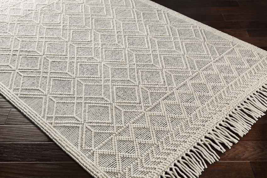 Introduce a touch of rustic elegance to your home with the Staveley Cottage Ivory Area Rug, a beautifully handwoven piece that exudes Farmhouse Cottage charm. Crafted with expert skill in India using premium New Zealand wool, this rug captures the cozy essence of cottage decor while providing durability and timeless style. The delicate fringe trim brings a whimsical touch that complements any space, adding texture and character to your home.