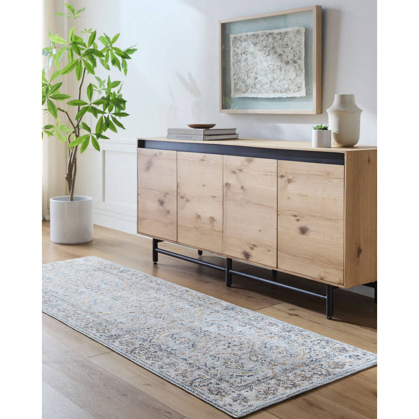 The Stepfon Traditional Ice Blue Rug blends timeless design with modern color stories. Its intricate medallions and ornate borders nod to antique Persian-style rugs, but the light, airy tones make it perfect for today’s interiors. The ice blue base soothes the eye, while layered accents of amber, charcoal, and medium brown bring warmth and dimension.