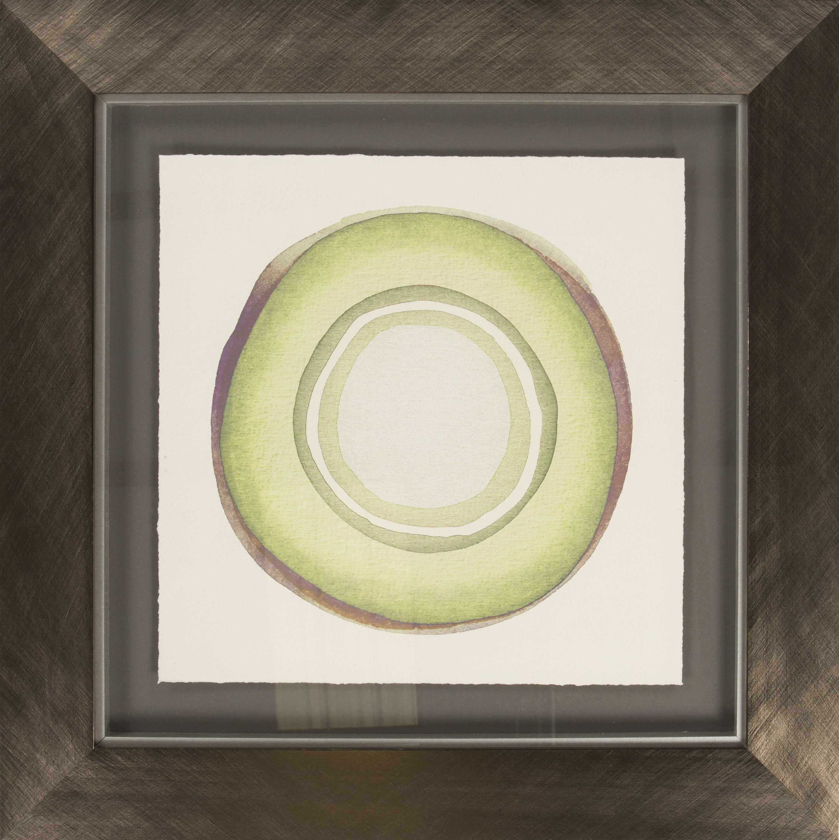 Our Svilengrad Wall Art Piece offers an enduring presentation of modern artistic simplicity that will competently revitalize your decor space. This captivating square artwork, digitally printed in China, features a minimalist design with concentric, slightly irregular rings in soft shades of green and a hint of purple. Framed for a refined presentation, the Svilengrad Wall Art brings a touch of understated modern elegance and organic form to any room.