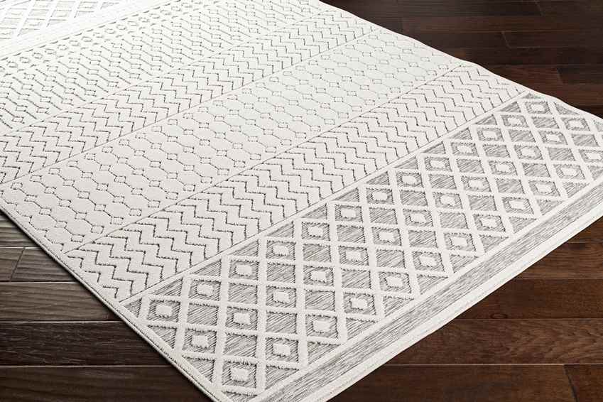 With soft and beautiful modern graphic details, our Telgt Global Medium Gray Area Rug creates a lasting centerpiece that is unparalleled in style and value. Its form with the optic contrasts will let you make striking statements within the space, while effortlessly refreshing the atmosphere. Its color palette gives a clean and contemporary feel as low pile lets it hold up under foot traffic and provides enough padding.
