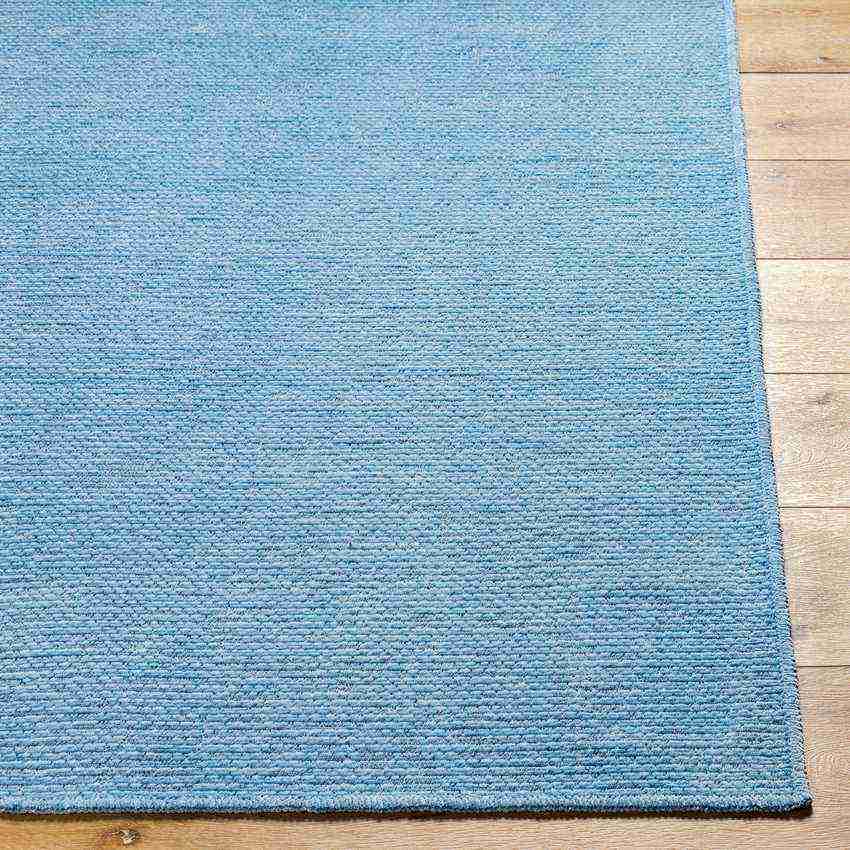 Tobey Solid and Border Pale Blue Washable Area Rug