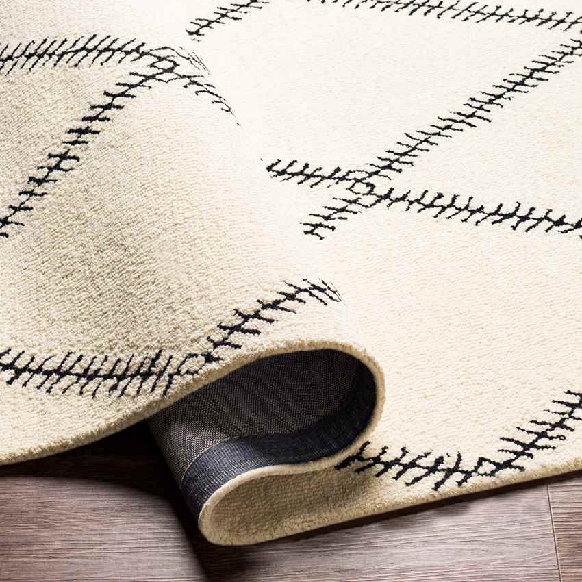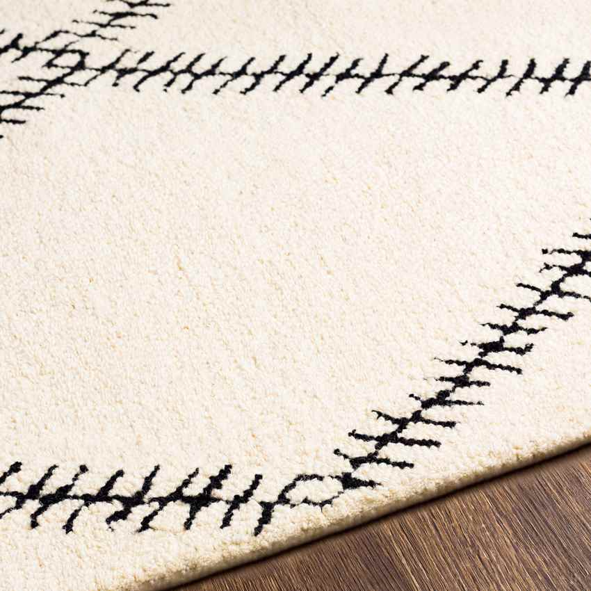The Tower Hill Modern Cream Area Rug is a testament to the seamless fusion of modern design and natural comfort. The bold contrast of cream and black creates a visually impactful statement, while the 100% wool construction provides a soft, warm foundation. The low pile design ensures a sleek, contemporary feel, ideal for modern interiors. Its stain-resistant and kid/pet-friendly properties make it a perfect addition to any home seeking both style and practicality.
