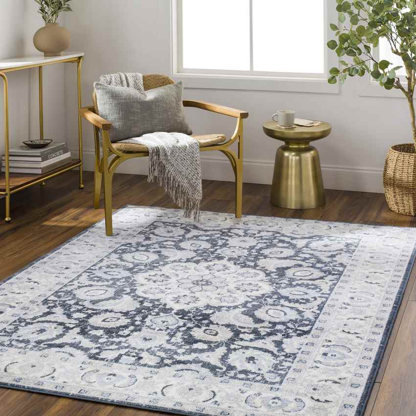 Trimble Traditional Ink Blue Washable Area Rug
