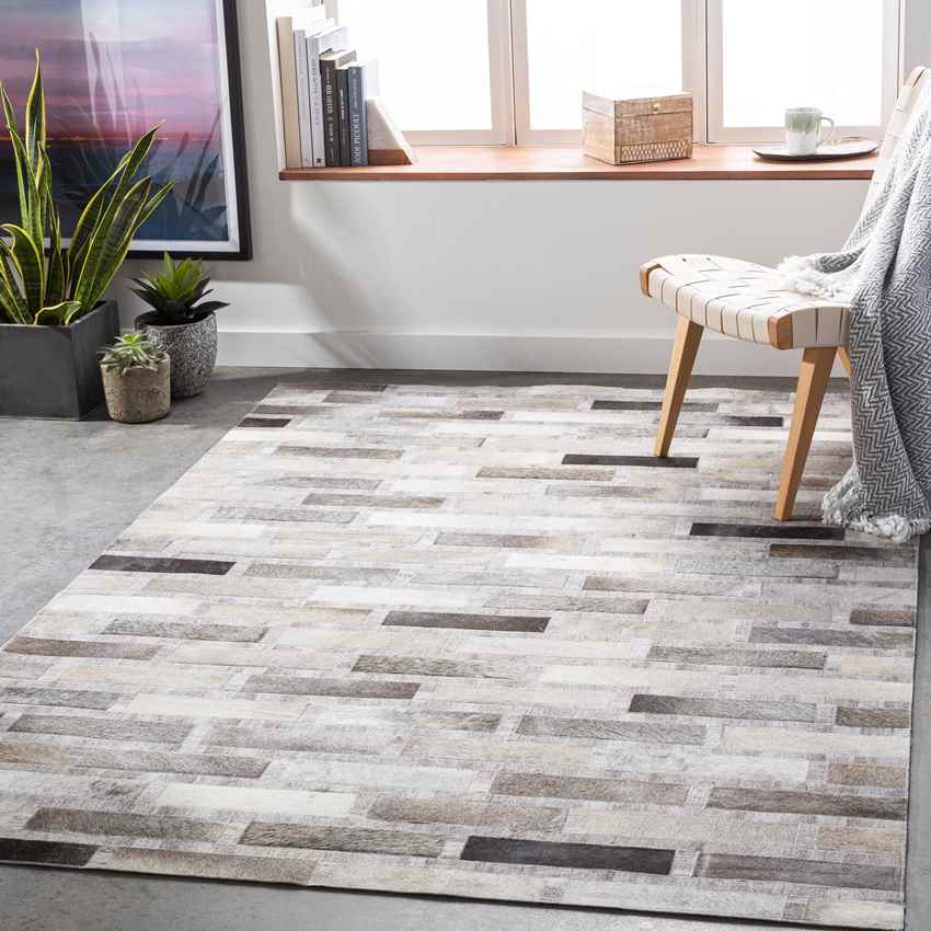 Udenhout Rustic Light Gray Area Rug's unique and trendy pattern looks simplistic however, is very impactful if you are seeking a minimal yet exquisite setting in your relaxing space. This gray toned composition will accompany your home in the most trendsetting way possible.