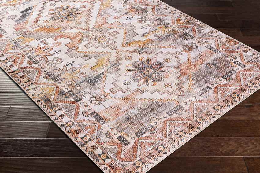 Wapello Traditional Burnt Orange Washable Area Rug