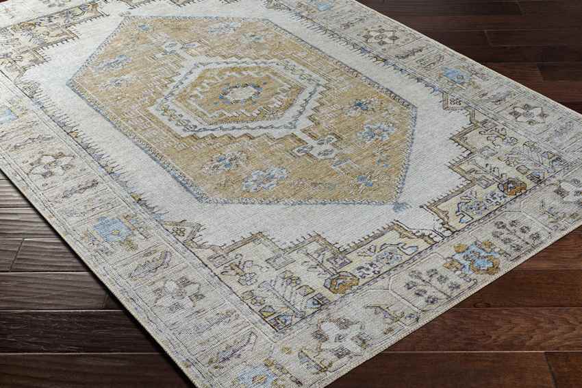 Step into the world of timeless elegance with the West Grove Traditional Gray Washable Area Rug. This rug, meticulously crafted in Turkey, showcases a graceful blend of colors including mustard, light sage, gray, denim, light blue, and light gray. Made from 100% chenille-polyester, it offers a plush feel underfoot while ensuring durability and ease of maintenance. Its low pile height is perfect for high-traffic areas, promising longevity and continuous allure in your home.