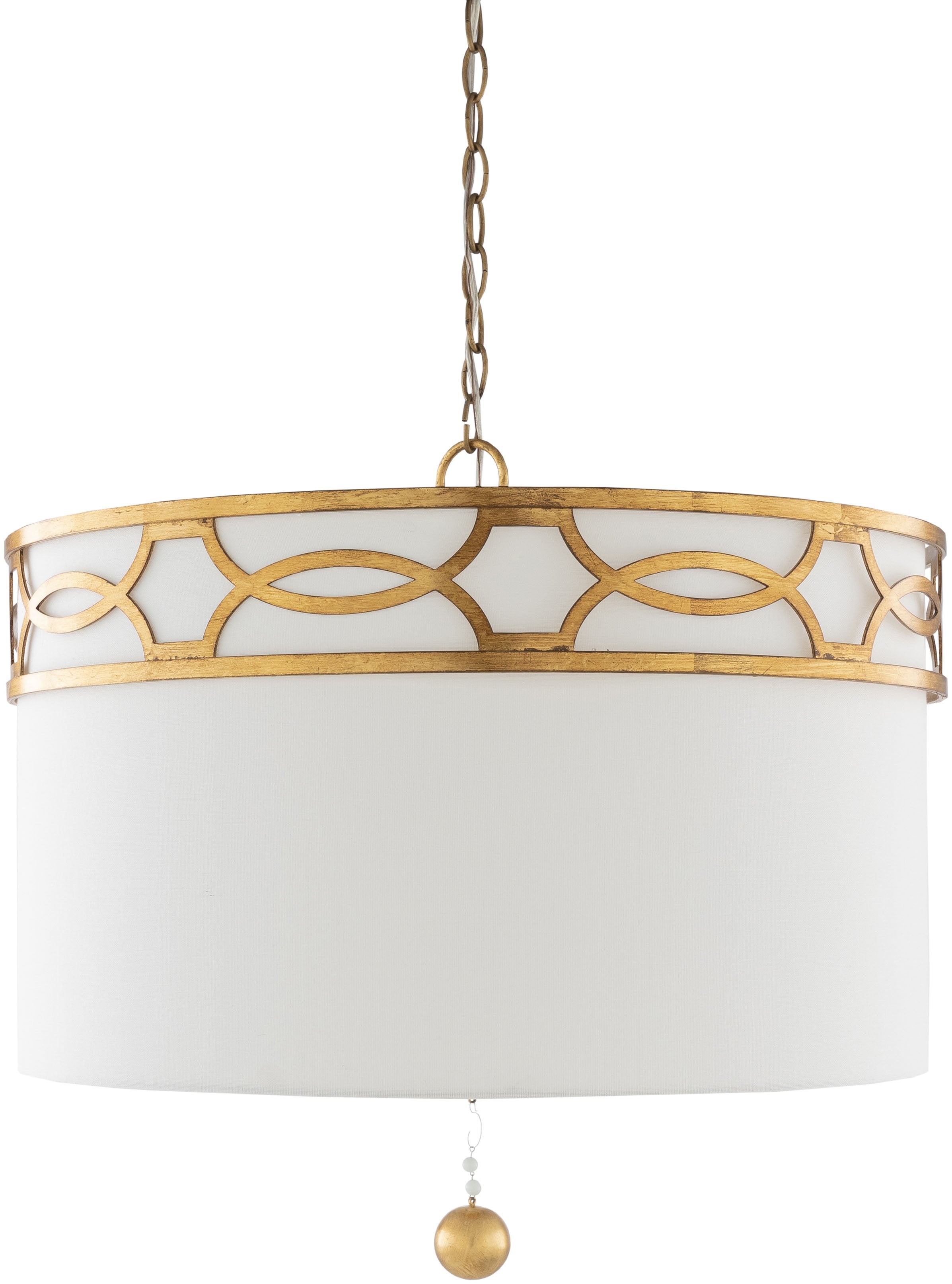 Product Specifications: Material: Linen, Polyester, Fabric, Metal, Steel Style: Traditional Color: Fixture: Gold, White; Base: Gold; Shade: White; Cord: Translucent Made in China Fixture: Gold, White; Base: Gold; Shade: White; Cord: Translucent, Gold Gilded Fabric, Metal Fixture Fixture: Gold, White; Base: Gold; Shade: White; Cord: Translucent Linen Shade 3 Light...