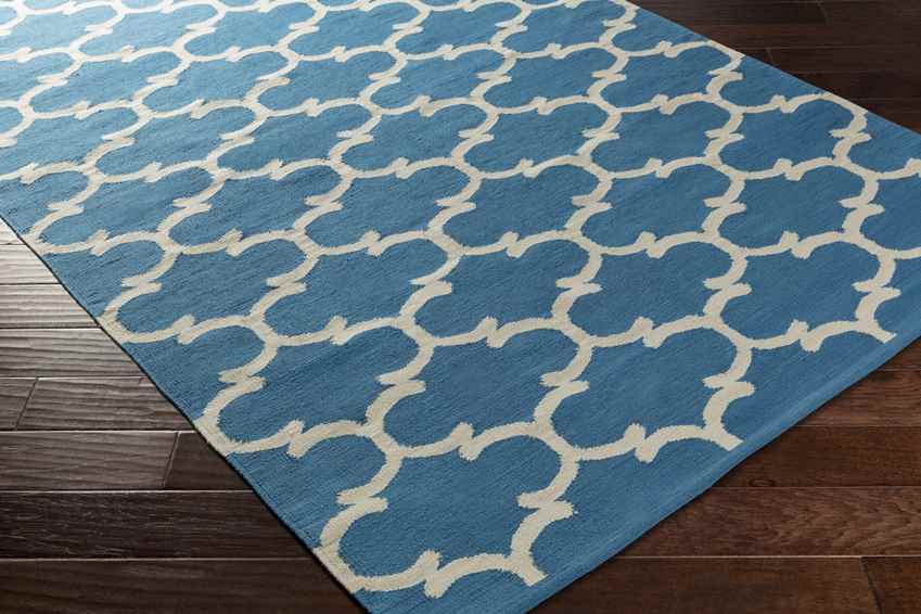The Zeumeren Bright Blue/Ivory Area Rug is more than just a beautiful accentits built for life. Hand-woven from high-quality cotton, this rug delivers a lightweight, flexible, and breathable foundation for your home. The flat, no-pile surface minimizes allergens and is a breeze to maintain, making it ideal for homes with kids, pets, or high foot traffic. Designed to stay beautiful even with daily use, this rug offers a perfect balance between softness, resilience, and everyday functionality.